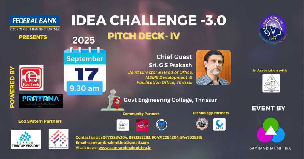 PITCHDECK IV SCHEDULED AT GOVT. ENGINEERING COLLEGE, THRISSUR ON 17TH SEPTEMBER 2025 FROM 9.30AM TO 3.PM