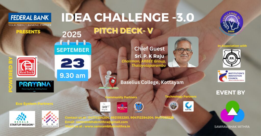 PITCHDECK V SCHEDULED AT BASELIUS COLLEGE, KOTTAYAM ON 23RD SEPTEMBER 2025 FROM 9.30AM TO 3.PM