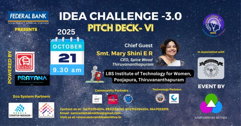 PITCHDECK VI RE-SCHEDULED AT LBS INSTITUTE OF TECHNOLOGY FOR WOMEN, POOJAPURA ON 21st OCTOBER 2025 FROM 9.30AM TO 3.PM